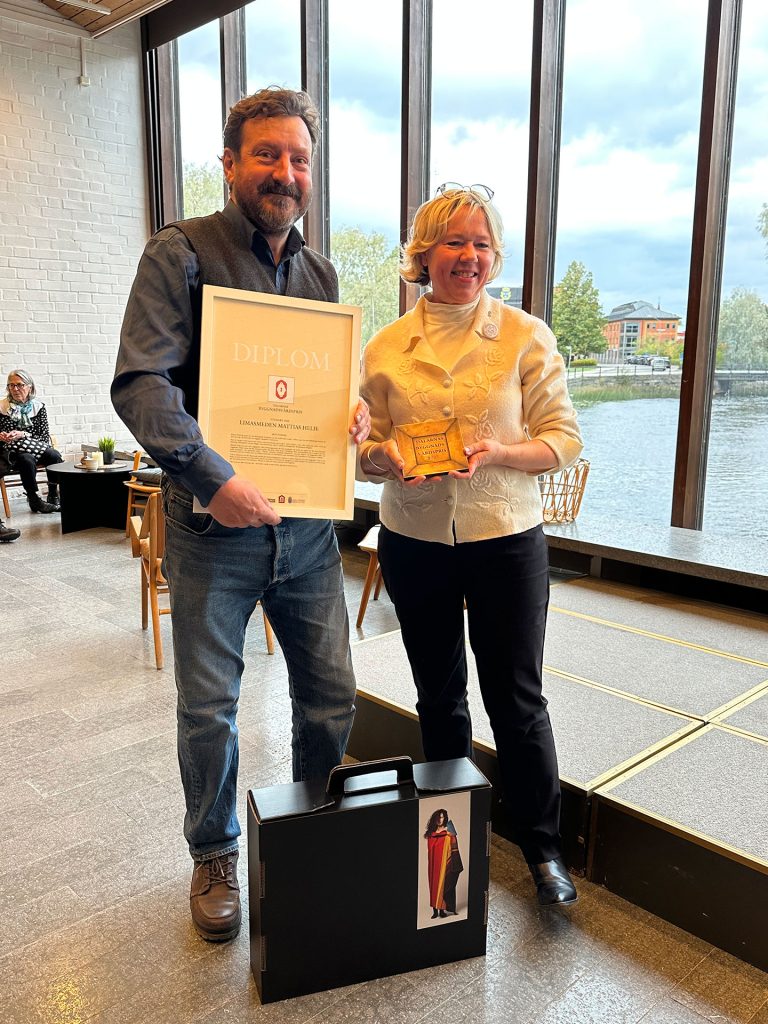 Mattias Helje får priset för sina fördjupande kunskaper om det traditionella smidet i Dalarna samt för sina folkbildande insatser att dela med sig och förmedla och engagera allmänhet i kulturarvet.
